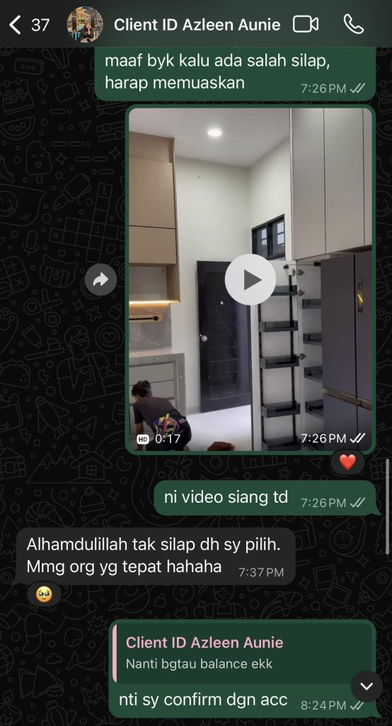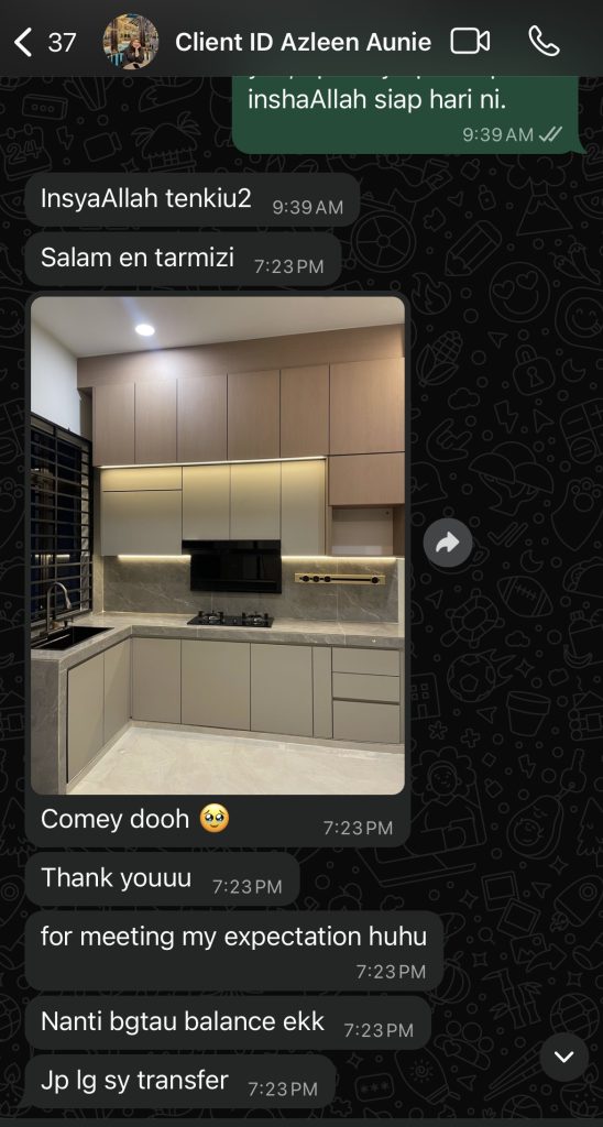 Q: Saya tak tahu nak pilih design. Boleh bantu?A: Ya! Kami sediakan free 3D design ikut bentuk dapur anda.